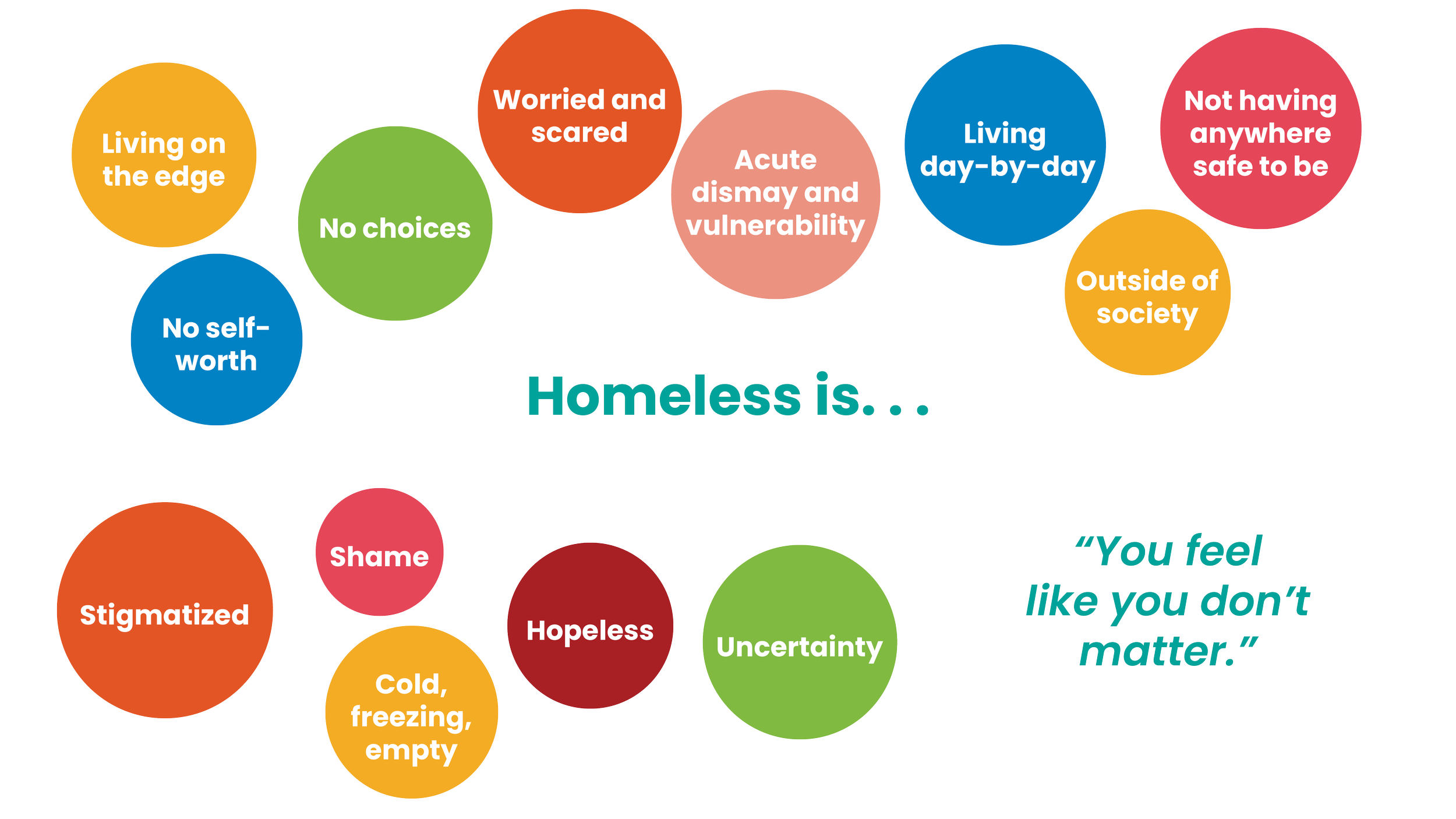 Let’s talk about the opposite of home. Take a moment to really think about what the word homeless brings to mind for you.